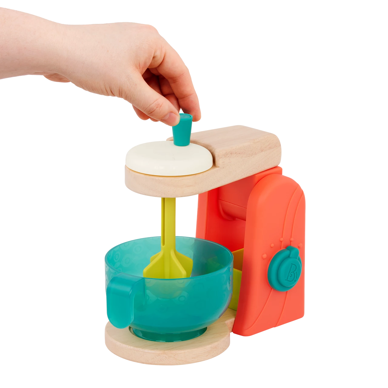 Cookies or cake – what will you bake? The Mini Chef – Mix & Bake Playset from B. toys has everything little bakers need to whip up sweet pretend treats. Kids can crack an egg into the sturdy stand mixer, add flour and butter, then turn the handle to watch the whisk spin. The mixer is entirely kid-powered – no batteries required! When the dough is ready to go, children can also grab the spatula to scrape it out of the bowl and use the rolling pin to flatten it. Not to mention, this pretend play set comes with a couple o’ chocolate chip cookies! But that’s only the beginning. With these colorful and tiny hands-friendly toys, kids can transform their play space into a make-believe bakery and cook up countless treats. Discover the full Mini Chef collection from B. toys to find more role-play sets for the little chef in your life! Recommended for children 3 years and older.