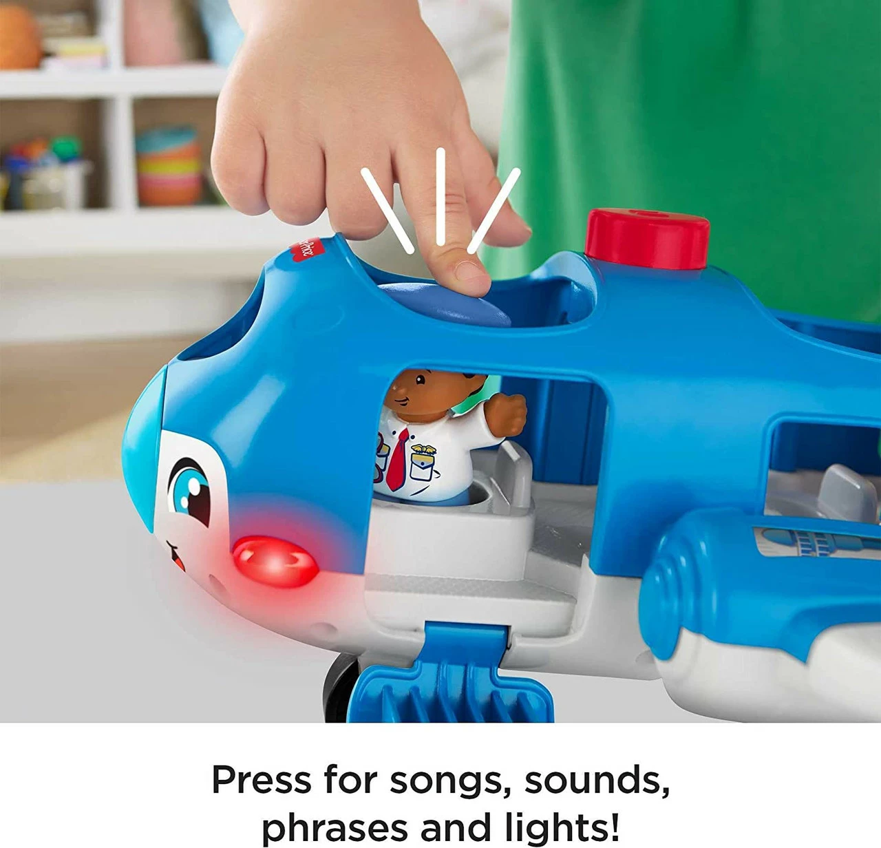 Buckle up and prepare to take off on all kinds of exciting adventures with the Little People Travel Together Airplane! When toddlers place Pilot Kurt in his seat, they’ll see the plane light up and hear fun songs and sounds about exploring the world with friends. With Emma on board, kids can press the Discovery Button for more sounds and songs. Then get the turbines spinning and take to the skies! The little travellers will have a blast sending Pilot Kurt and Emma soaring through the skies and sharing all their new adventures together. Where development comes into play Curiosity and Wonder: As toddlers discover how to activate the airplane’s lights, sounds, and songs, they’ll see how their actions can make fun things happen—a great intro to cause and effect! Emotions and Self-Expression: As kids place Pilot Kurt and Emma in their seats and imagine all sorts of high-flying adventures, they see how fun it can be to share a new experience with others.