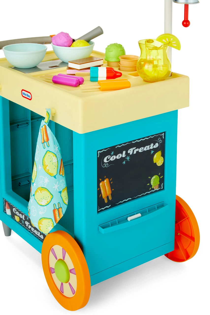 - Tonnes of accessories. includes 25 accessories for extended play time. 3 ice cream scoops, 2 ice cream cones, 2 ice cream sandwiches, 2 pull-apart popsicles, a red, white, and blue popsicle, 2 lemon slices, an ice cream scooper, a lemonade pitcher, 2 cups, 2 bowls, 2 spoons, an umbrella, a bell, a towel, and chalk