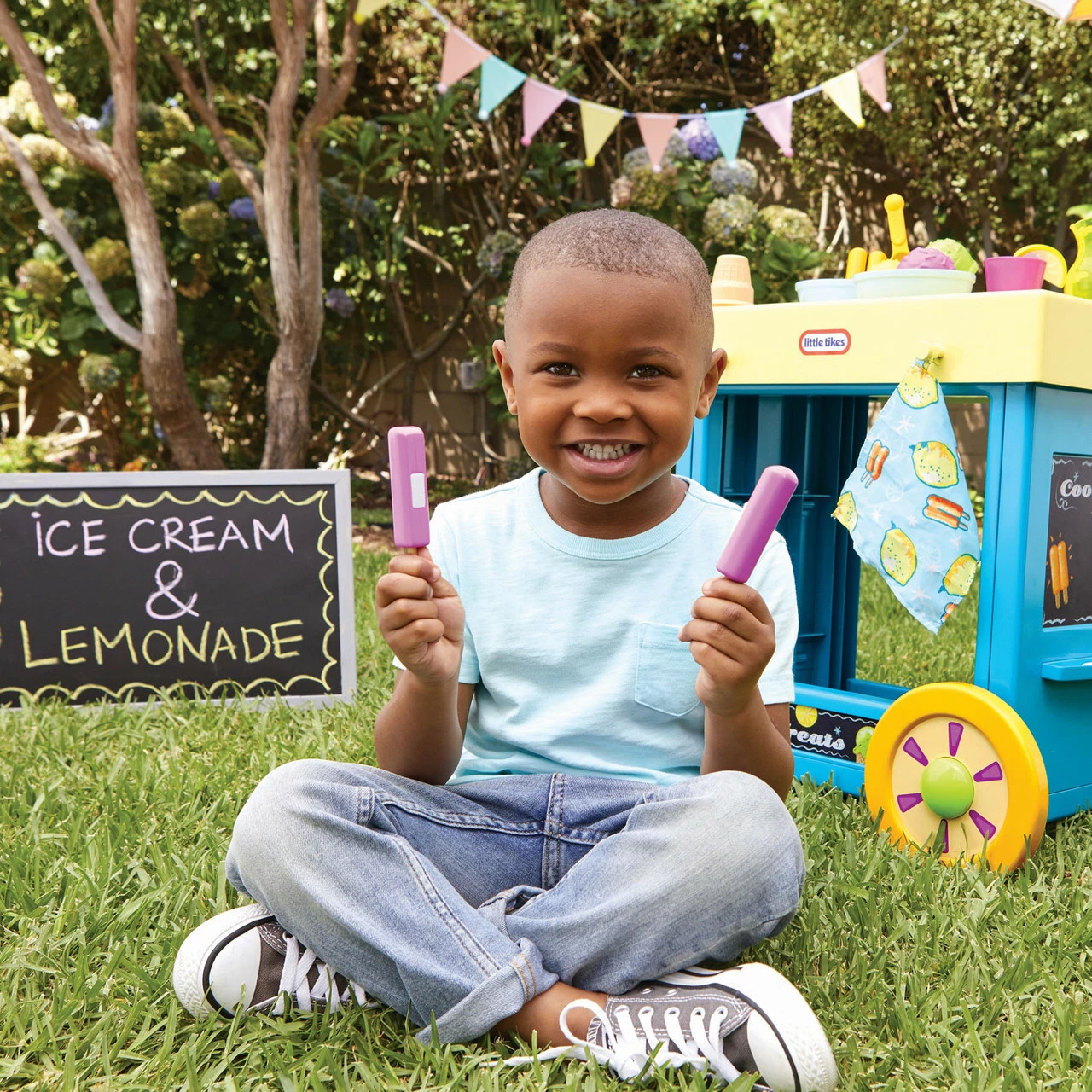 - Two ways to play Kids will have a blast pretending to scoop and assemble their own ice cream cones, or they can pretend to run their own lemonade cart and hand out glasses of delicious, “freshly squeezed” lemonade.