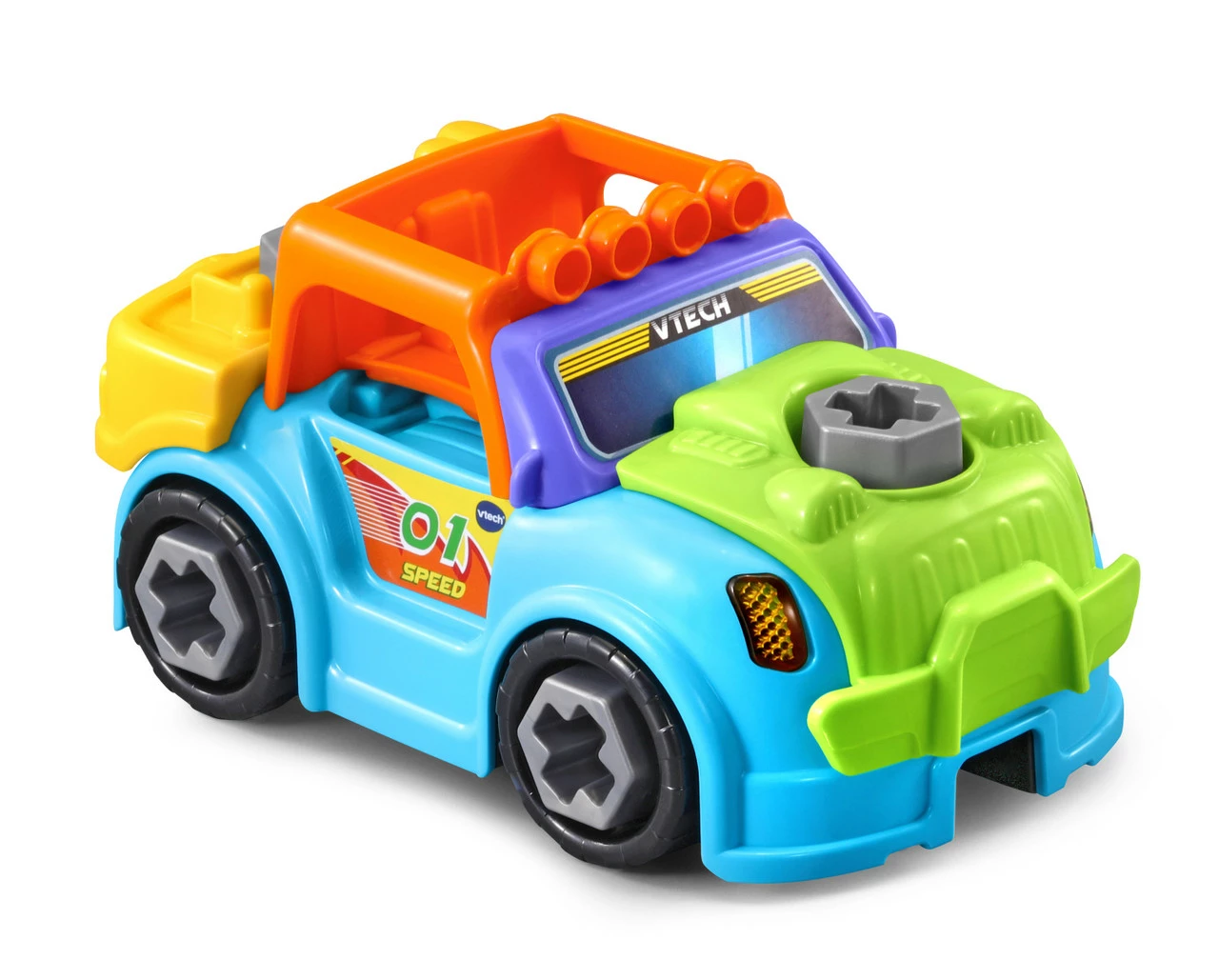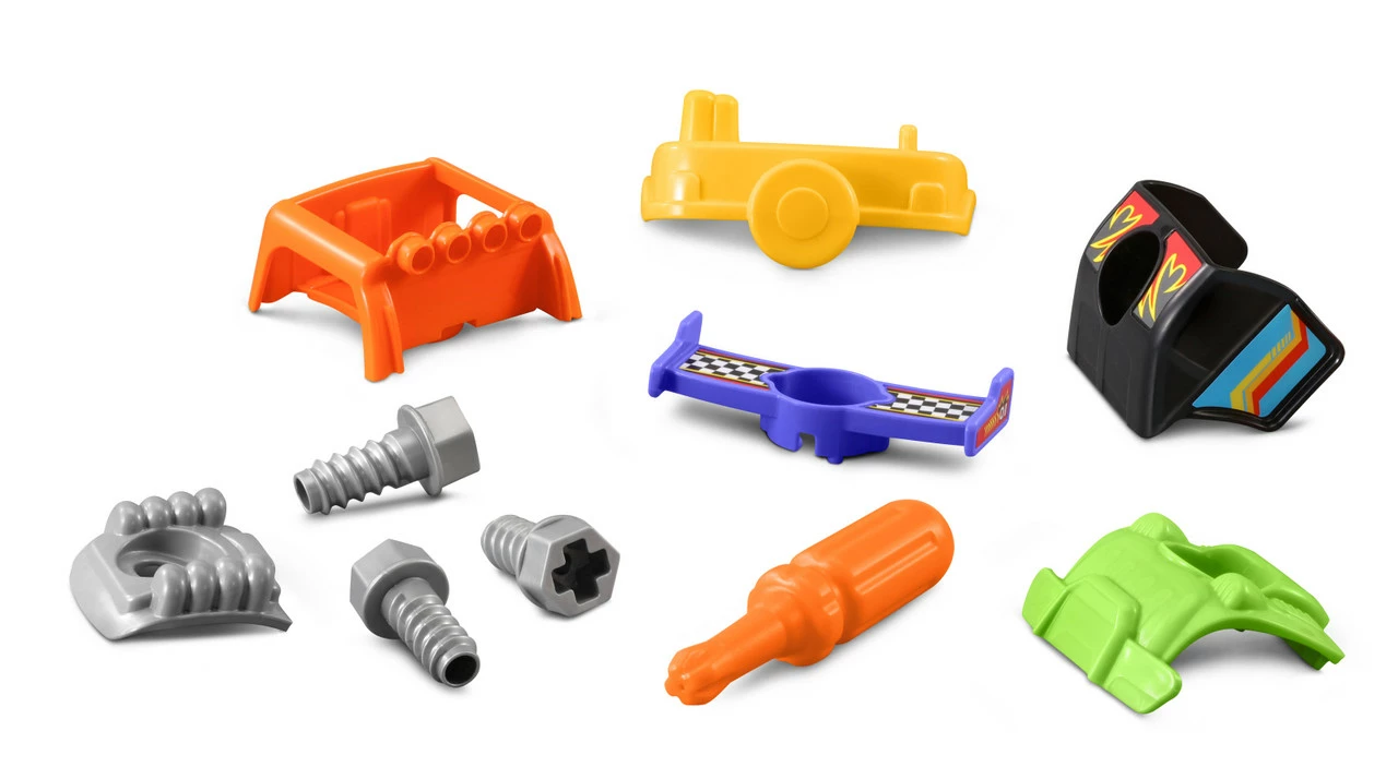 Through guided play the carrier will ask children to add accessories to build the car in a variety of cool designs.