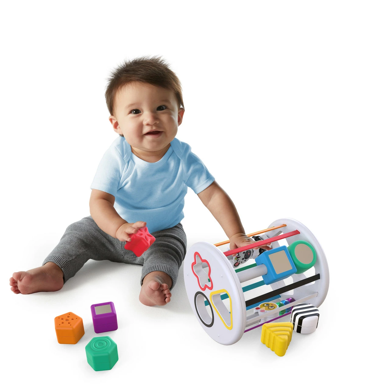 Zen the Zebra and Cal the Caterpillar are having a blast on their playground, and your little one’s invited! From shape sorting to imaginary play, this sensory toy offers endless ways to play, discover and explore. When they’re not busy turning and spinning the beads, characters, and mirror blocks on the sorter’s sides, baby can stretch the soft, elastic bands to reach for and grab the 6 colourful shape blocks. This “put-and-take” play cultivates confidence and independence for infants and toddlers. The textured shape blocks and high-contrast and black-and-white elements offer sensory stimulation. If your little one loves this playground toy, check out Baby Einstein’s new “Sandbox” series on YouTube, which features Zen, Cal, and other playful and curious animal characters. This infant toy is hand washable and made with BPA-free materials. Storage is a breeze because you can keep all the blocks contained in the sorter when it’s not in use. Looking for a baby shower or first birthday gift? This toy is perfect for either occasion. It’s appropriate for children ages 6 months and up. Open-ended play – Turn, spin, stretch, & sort! This multi-sensory shape sorter offers endless ways to play, discover, and explore. Soft, elastic bands let baby reach for and grab the shape blocks. Colour and shape discovery – A total of 6 shape cutouts invite baby to match the colourful shape blocks and put them through both ends of the sorter Promotes Sensory and cognitive development – High-contrast and vibrant colours on textured shapes offer sensory stimulation. Mirrors and sliding beads promote self-discovery and engagement. Imaginary play with pals – This playground-themed shape shorter features Zen the Zebra and Cal the Caterpillar, both popular characters from Baby Einstein’s new “Sandbox” series (available to stream on YouTube). Easy to store & clean – Simply store the shape blocks in the sorter so they’ll never go missing. Hand washable and made with BPA-free materials. Appropriate for children ages 6 months and up.