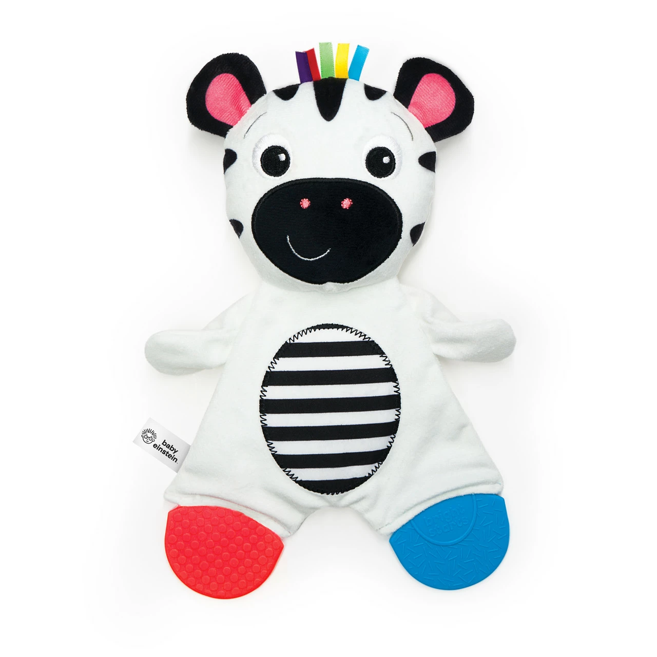 Engage your baby’s senses with the Zen the Zebra Sensory Plush Teether. Featuring Zen the Zebra, the calming and inspirational character from Baby Einstein edutainment videos, this 2-in-1 toy will captivate your baby’s curiosity. Made for ages newborn and up, watch as they discover the black-and-white and high-contrast patterns, the varied tactile elements, and the teething-friendly components that will soothe sore gums. You will also appreciate that the sensory stimulation and eye-catching patterns can help with your infant’s development. After at-home or on-the-go snuggle time, keep Zen the Zebra clean by wiping with a damp cloth and mild soap. 2-in-1 plush and teether that engages multiple senses. Captivating high-contrast design aids in vision development. Teething component helps soothe sore gums. Features Zen the Zebra, as seen in Baby Einstein’s edutainment videos. Wipeable and easy to clean.